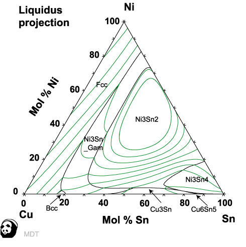 There are 2 diagrams for each assessment in Cu-Ni-Sn.