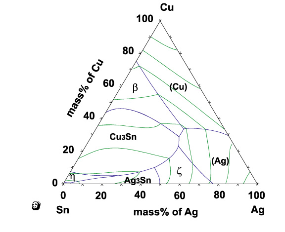 はんだ合金熱力学データベース ADAMIS を使用した計算結果の例 Sn-Ag-Cu 液相面図